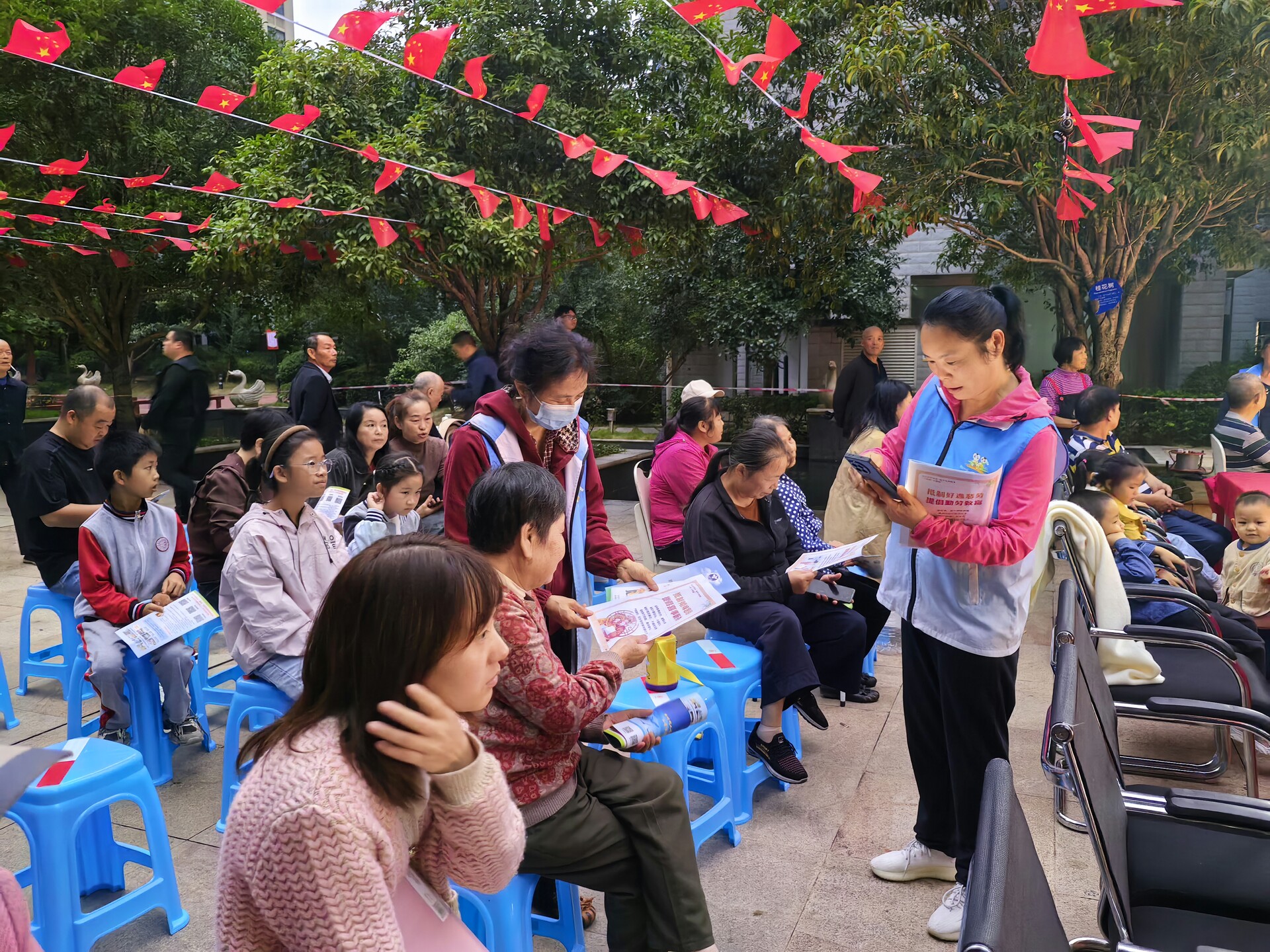 月圆华诞映初心,邻里情深暖湘湾晚会现场,舞蹈《故乡情》、《情醉》旗袍秀等节目轮番上演,展现多元文化魅力。市社科联慰问困难群众,传递温暖;区司法局开展普法宣传,提升居民法治意识。活动还穿插了禁毒、交通安全等有奖问答,寓教于乐。