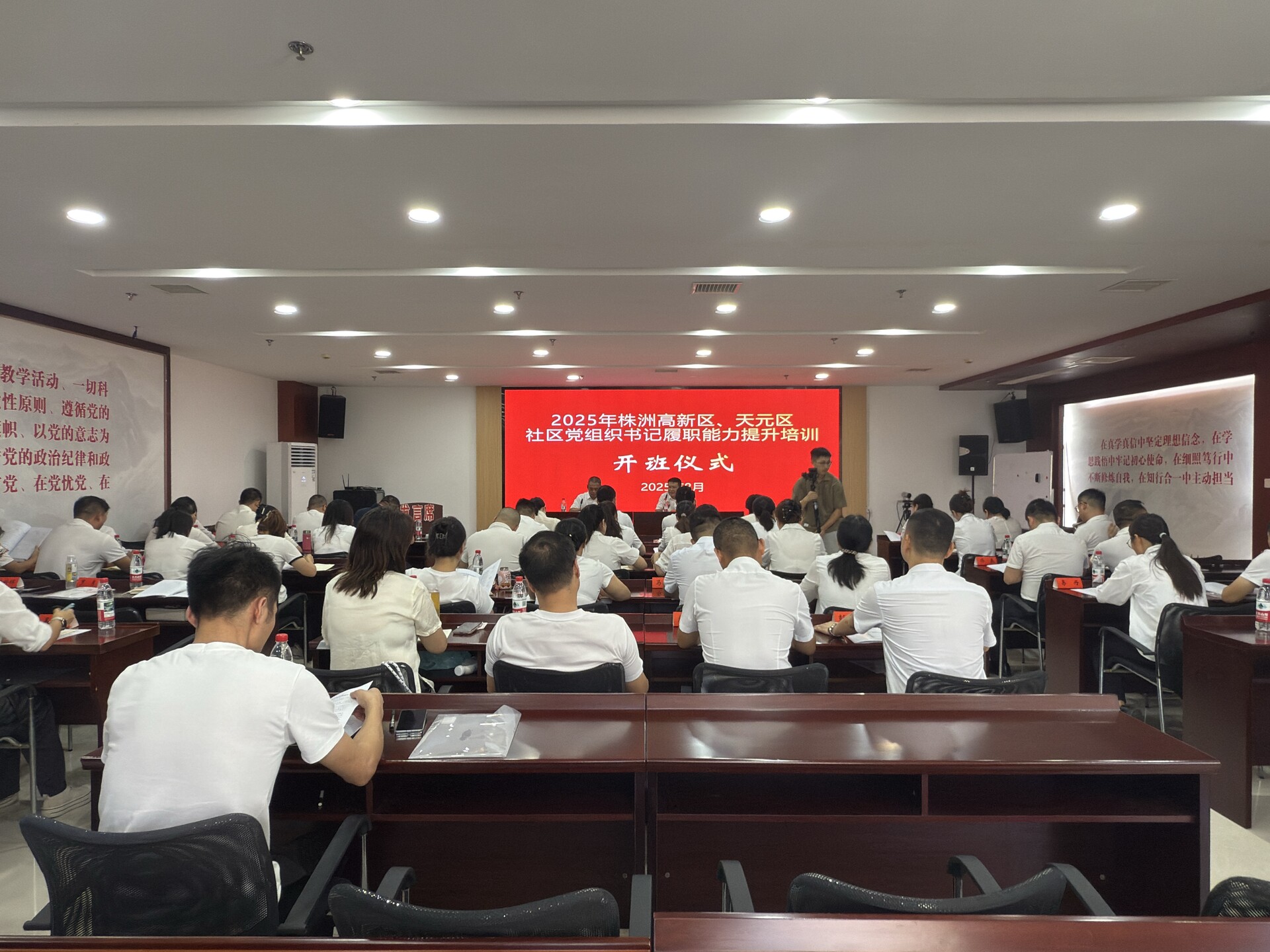 为进一步提升社区书记的综合素养与履职能力,夯实基层治理根基,推动社区工作高质量发展,8月25日上午,株洲市天元区社区党组织书记履职能力提升培训班开班仪式在天元区老干部服务中心二楼会议室隆重举行。来自辖区内各社区的52名社区书记齐聚一堂,开启为期5天的集中学习充电之旅。