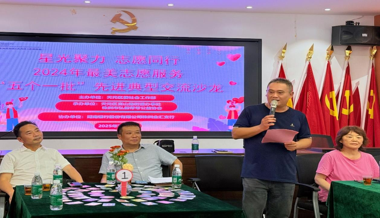 志愿服务是社会文明的温暖底色,每一位志愿者都是点亮城市的“微光”。为总结志愿服务经验,激发志愿活力,7月25日下午,天元区“星光聚力 志愿同行”2024年最美志愿服务“五个一批”先进典型交流沙龙在小湖塘社区党群服务中心温馨举行。本次活动由天元区委社会工作部主办,嵩山路街道办事处、株洲市弘毅帮帮公益协会承办,湖南银行股份有限公司株洲金汇支行协办,天元区委社会工作部部长刘振华与“五个一批”先进典型代表齐聚一堂,在轻松愉快的氛围中畅聊服务心得,共话志愿发展。