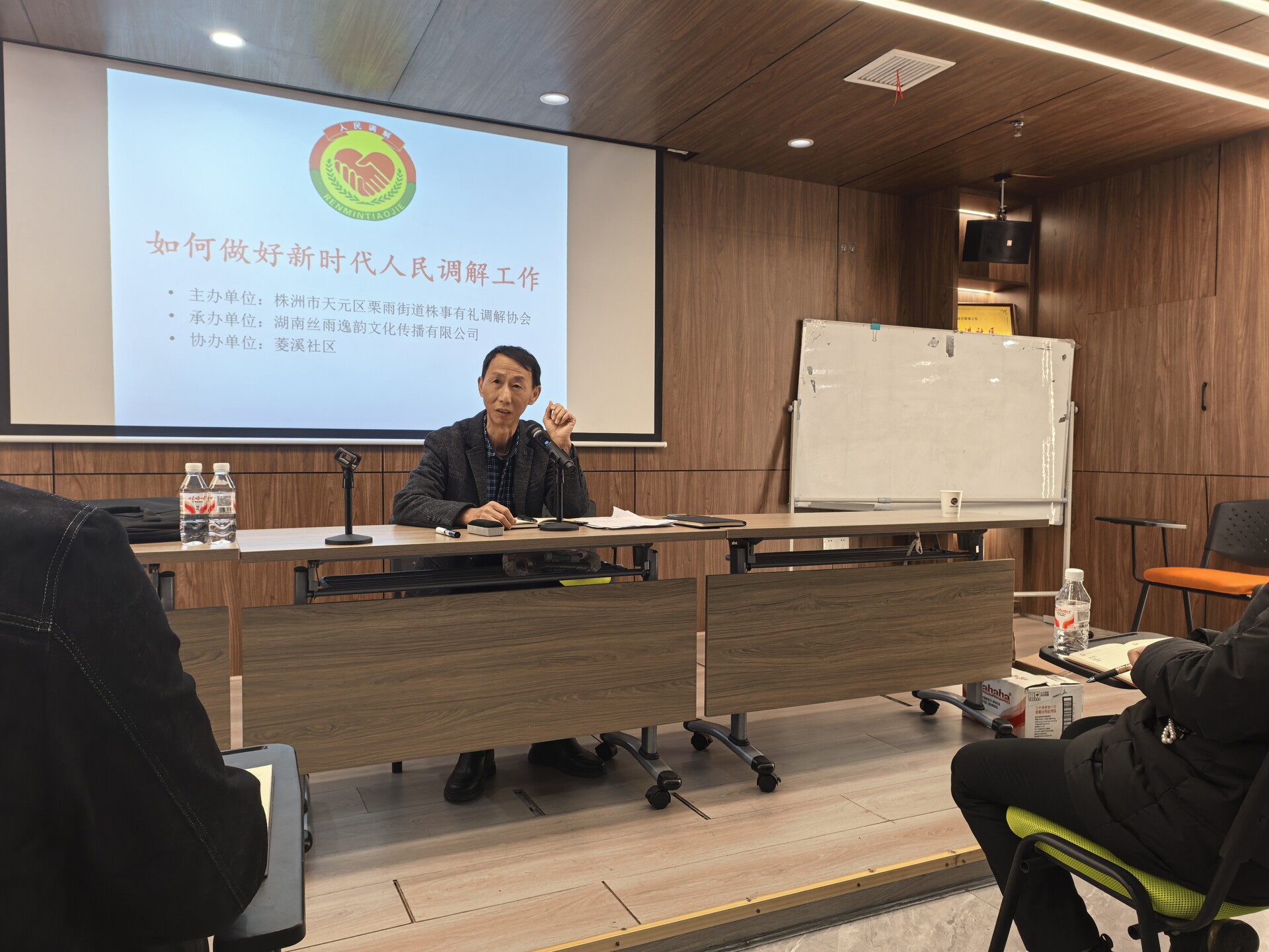11月11日下午,一场别开生面的“新时代人民调解”主题培训在栗雨街道菱溪社区热烈展开。此次活动由“株事有礼”调解协会名誉会长刘克平亲自主讲,吸引了辖区调解员、义警、物业工作者及居民代表的热情参与。